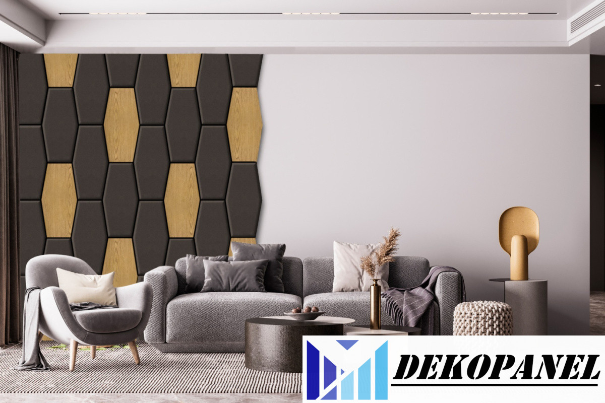 Čalúnený panel ŠESŤUHOLNÍK je moderný geometrický stenový obklad, ktorý dodá interiéru originálny a štýlový vzhľad. Mäkký povrch zjemňuje priestor, tlmí nárazy a umožňuje vytvárať kreatívne zostavy na stene v spálni, obývačke aj kancelárii.