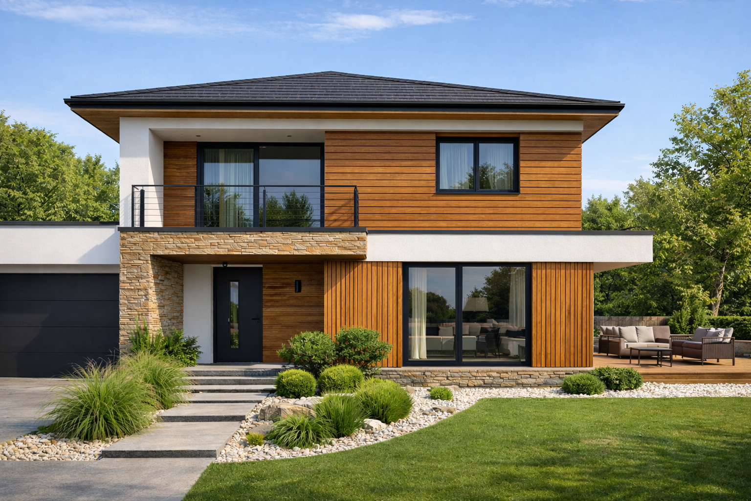 s povrchom imitujúcim drevo a jedinečným patentovaným profilom, sú kvalitným a efektným obkladom všetkých vonkajších plôch, fasád a stien. Naše vonkajšie lamely majú realistický vzhľad prírodného dreva s textúrou a farbami, ktoré napodobňujú živé drevo.